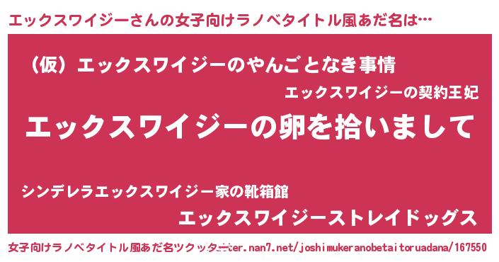 | 意味不明あだ名 | 『とにかく怪しいエックスワイジー』 |