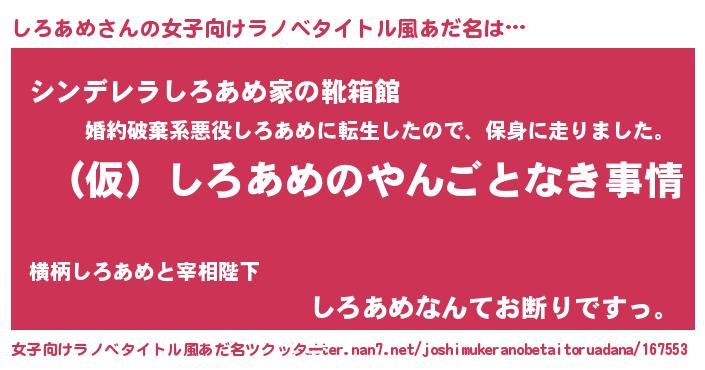 | 胡散臭い通販商品みたいなあだ名 | 『必ず成功する水晶球…その名も「しろあめ」』 |