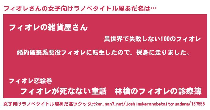 | 男性向けラノベタイトル風あだ名 | 『フィオレスレイヤー』 |