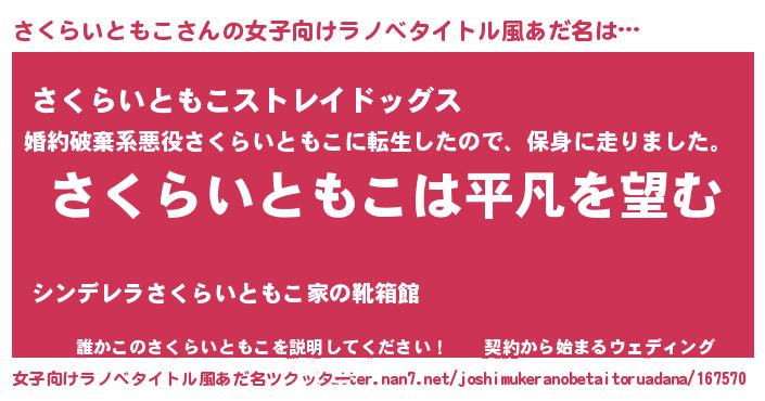 | 男性向けラノベタイトル風あだ名 | 『ダンジョンにさくらいともこを求めるのは間違っているだろうか』 |