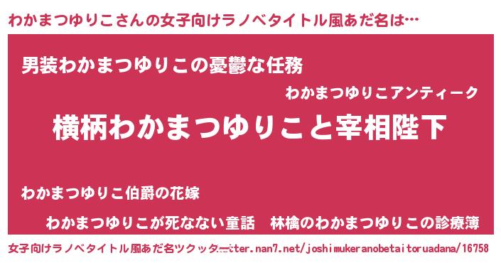 | 男性向けラノベタイトル風あだ名 | 『わかまつゆりこに滅ぼされるだけの簡単なお仕事です』 |