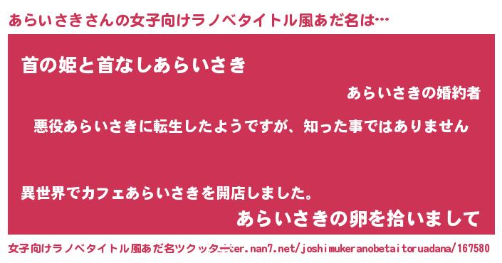 | 胡散臭い通販商品みたいなあだ名 | 『あなたにだけ特別に提供する世界で10本だけ現存している希少なブランデー…その名も「あらいさき」』 |