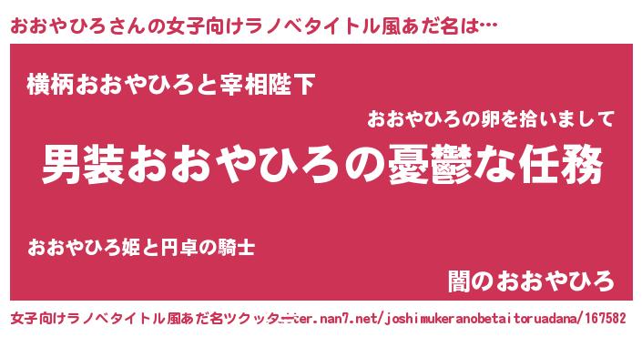 | 男性向けラノベタイトル風あだ名 | 『うちのおおやひろが世界を掌握している!』 |