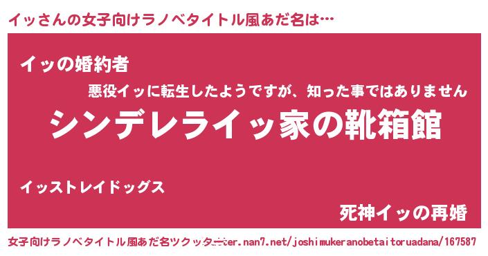 | 男性向けラノベタイトル風あだ名 | 『緋弾のイッ』『ノーゲーム・ノーイッ』 |