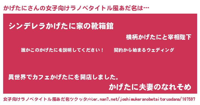 | 男性向けラノベタイトル風あだ名 | 『カゲタニアートオンライン』 |