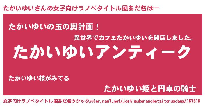 | ファンタジー風あだ名 | 『ゼタカトゥ』『ユリタカヴァット』 |