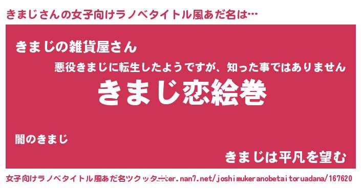 | 男性向けラノベタイトル風あだ名 | 『ノーゲーム・ノーキマジ』 |