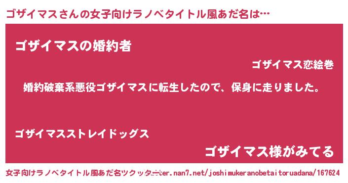 | 男性向けラノベタイトル風あだ名 | 『ゴザイマススレイヤー』 |