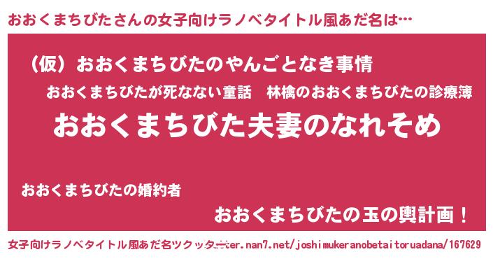 | 欧米人風あだ名 | 『ダニエルおおくまちびた』 |