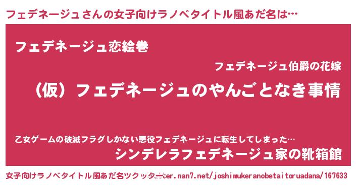 | 男性向けラノベタイトル風あだ名 | 『フェデネージュの憂鬱』 |