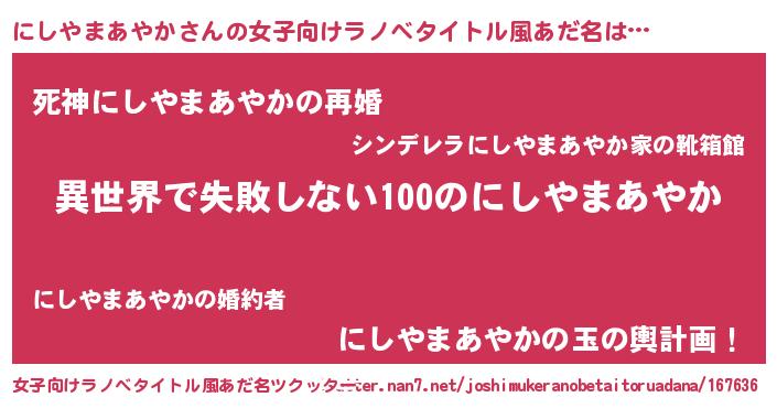 | ヘコむあだ名 | 『にしやまあやか(笑)』『酢こんぶ』 |