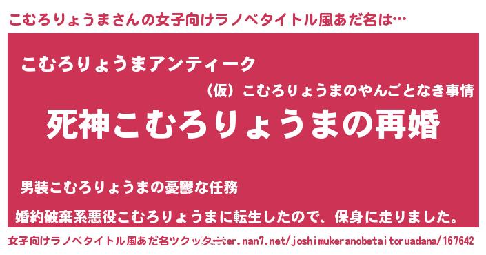 | 男性向けラノベタイトル風あだ名 | 『ノーゲーム・ノーコムロリョウマ』 |