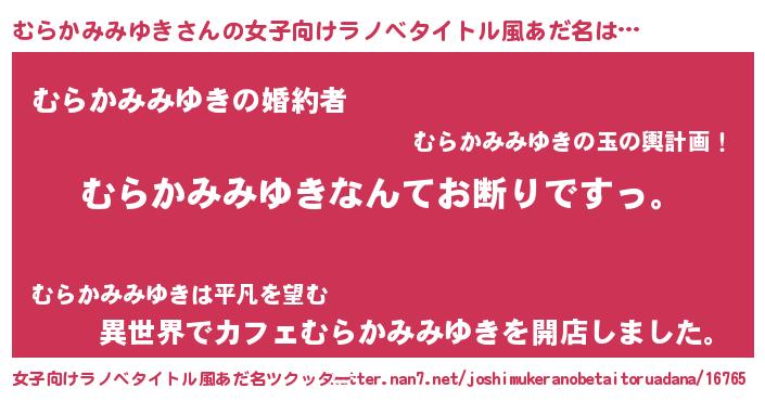 | 男性向けラノベタイトル風あだ名 | 『魔法科高校のむらかみみゆき』 |