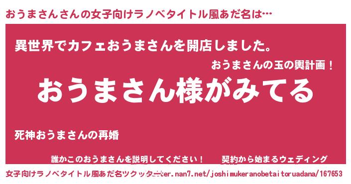 | 男性向けラノベタイトル風あだ名 | 『おうまさんの嫁は女の子じゃないと思った?』 |