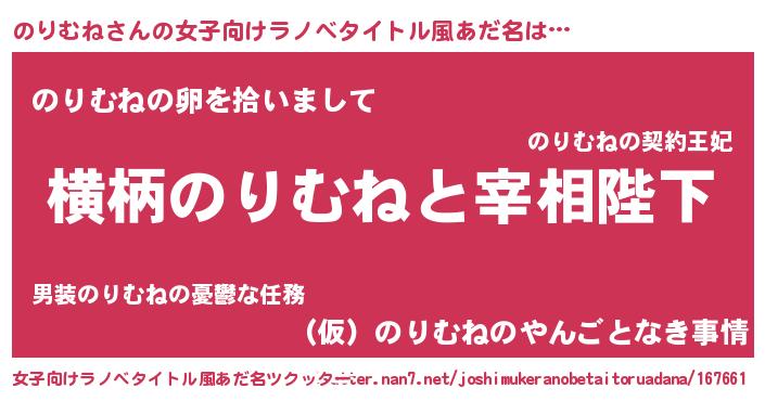 | 男性向けラノベタイトル風あだ名 | 『のりむねに滅ぼされるだけの簡単なお仕事です』 |