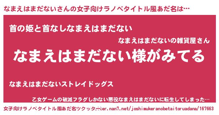 | 男性向けラノベタイトル風あだ名 | 『なまえはまだないの嫁は女の子じゃないと思った?』 |