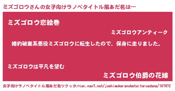 | ポケモン風あだ名 | 『ミズキング』『ミックウザ』 |