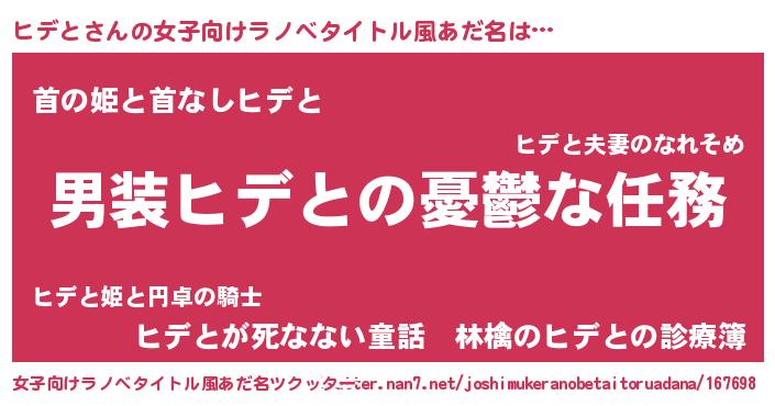 | 男性向けラノベタイトル風あだ名 | 『冴えないヒデとの育てかた』 |