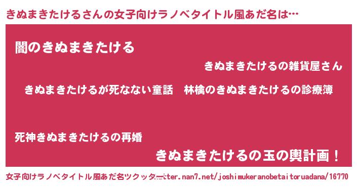 | 恥ずかしいあだ名 | 『キヌマキタケルデラックス』 |