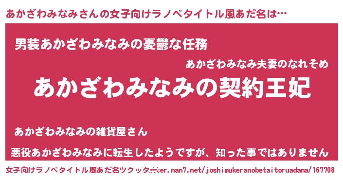 | 胡散臭い通販商品みたいなあだ名 | 『来世でも幸せになれる招き猫…その名も「あかざわみなみ」』 |