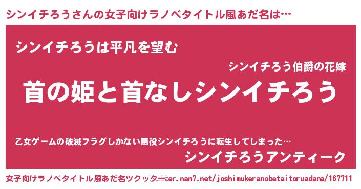 | 男性向けラノベタイトル風あだ名 | 『はたらくシンイチろうさま!』 |