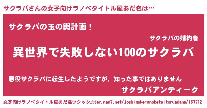 | 男性向けラノベタイトル風あだ名 | 『サクラバという概念が存在しない退屈な世界 』 |