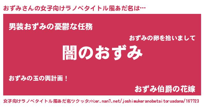 | 男性向けラノベタイトル風あだ名 | 『Re:おずみから始める異世界生活』 |
