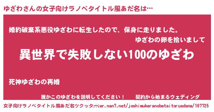 | 男性向けラノベタイトル風あだ名 | 『ゆざわという概念が存在しない退屈な世界 』 |