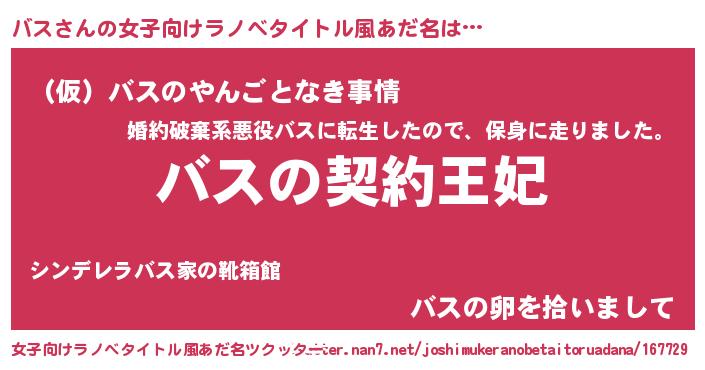 | 男性向けラノベタイトル風あだ名 | 『誰もが恐れるあのバスが、ぼくの専属メイドになるようです。』 |