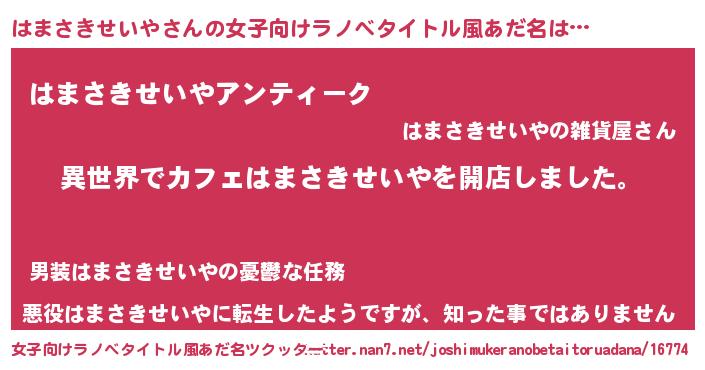 | 意味不明あだ名 | 『永久保存はまさきせいや』 |