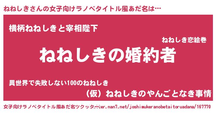 | 肩書あだ名 | 『ねねしき総理大臣』『ねねしき御曹司』 |