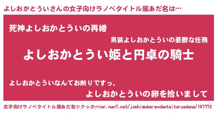 | 男性向けラノベタイトル風あだ名 | 『よしおかとういの憂鬱』 |