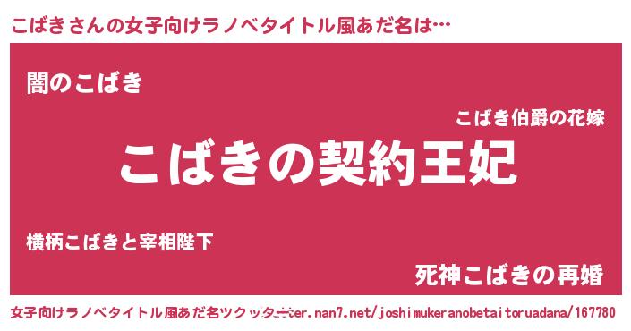 | 胡散臭い通販商品みたいなあだ名 | 『来世でも幸せになれる水素水…その名も「こばき」』 |