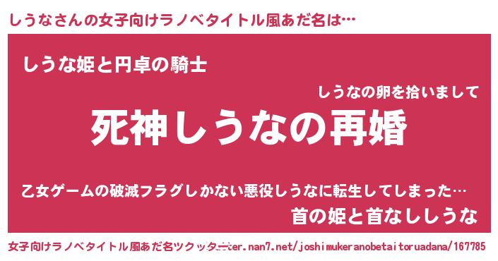 | 男性向けラノベタイトル風あだ名 | 『ノーゲーム・ノーシウナ』 |