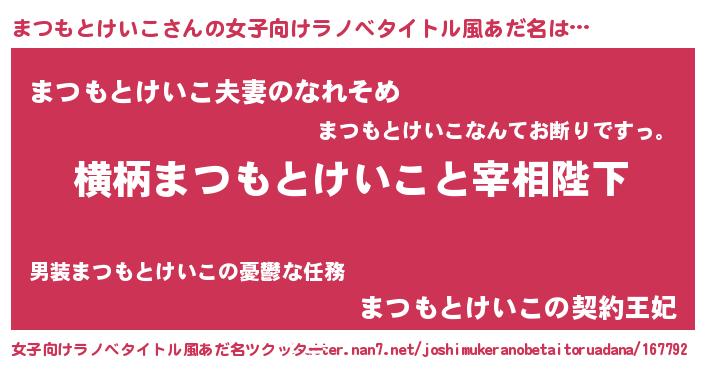 | 男性向けラノベタイトル風あだ名 | 『まつもとけいこに滅ぼされるだけの簡単なお仕事です』 |
