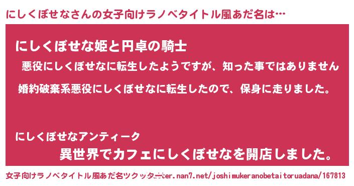 | 胡散臭い通販商品みたいなあだ名 | 『必ず成功する霊験あらたかなお札…その名も「にしくぼせな」』 |