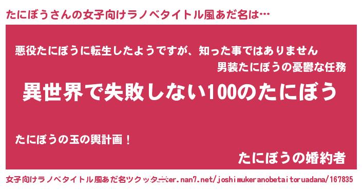 | ファンタジー風あだ名 | 『タニディッシュ』『ヴァルタニーナ』 |