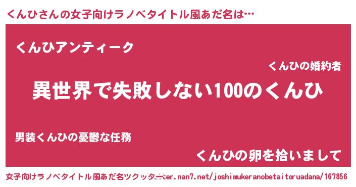 | 胡散臭い通販商品みたいなあだ名 | 『絶対に幸福をもたらす水素水…その名も「くんひ」』 |