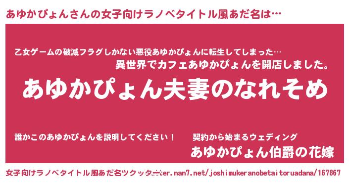 | 欧米人風あだ名 | 『ダニエルあゆかぴょん』 |