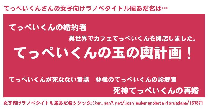 | 男性向けラノベタイトル風あだ名 | 『転生したらてっぺいくんだった件』 |