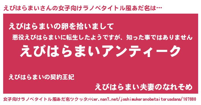 | 男性向けラノベタイトル風あだ名 | 『魔法科高校のえびはらまい』 |