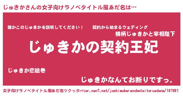 | 肩書あだ名 | 『じゅきか先生』『じゅきか社長令嬢』 |