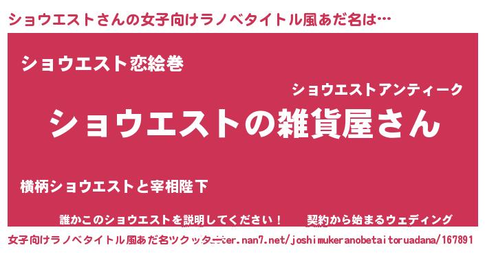 | 意味不明あだ名 | 『ショウエストフォーエバー』 |