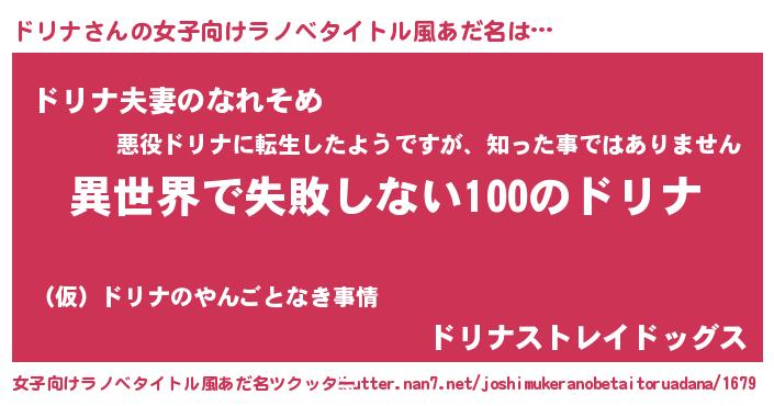 | 男性向けラノベタイトル風あだ名 | 『ドリナという概念が存在しない退屈な世界 』 |