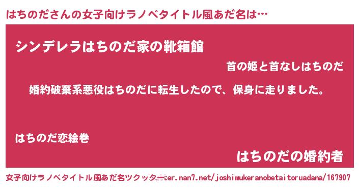 | 男性向けラノベタイトル風あだ名 | 『転生したらはちのだだった件』 |