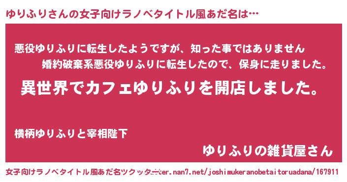 | 男性向けラノベタイトル風あだ名 | 『誰もが恐れるあのゆりふりが、ぼくの専属メイドになるようです。』 |