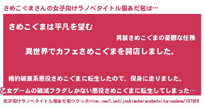 | 意味不明あだ名 | 『永久保存さめこぐま』 |