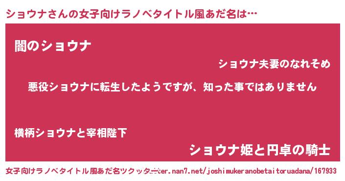 | 意味不明あだ名 | 『住所不定無職ショウナ(1歳)』 |
