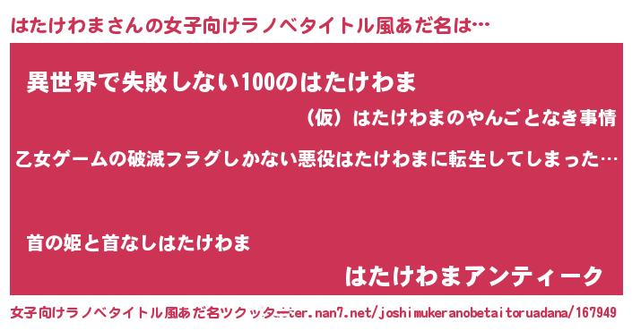 | ヘコむあだ名 | 『はたけわま(苦笑)』『はたにゅー』 |