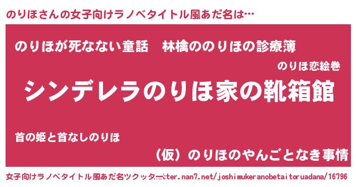 | 男性向けラノベタイトル風あだ名 | 『緋弾のノリホ』『魔弾の王とのりほ』 |